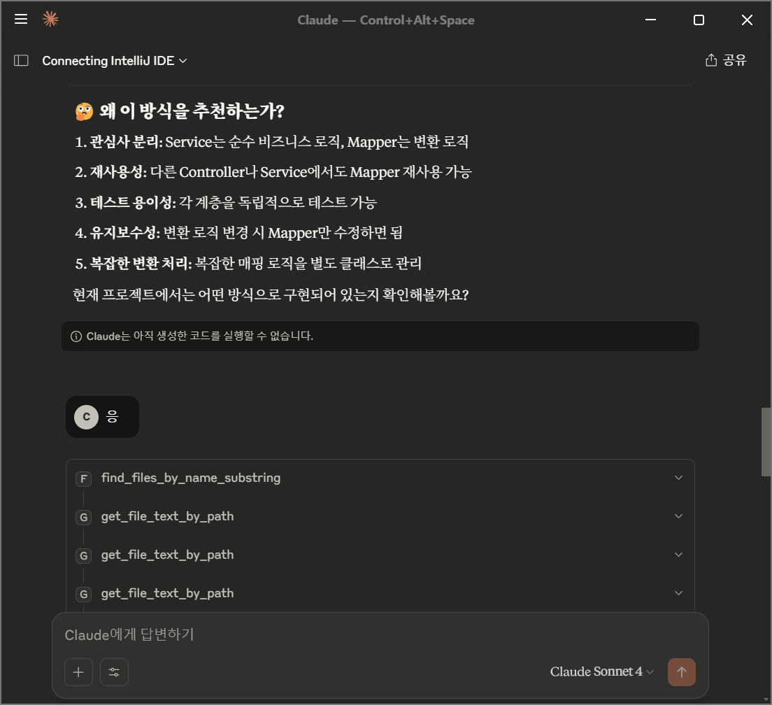 그러나 프로젝트와 관련된 질문을 하면 코드를 매번 탐색하기 때문에 규모가 큰 프로젝트에서 질문하는 경우, 답변을 얻기까지 상당한 시간이 소요될 것 같습니다.