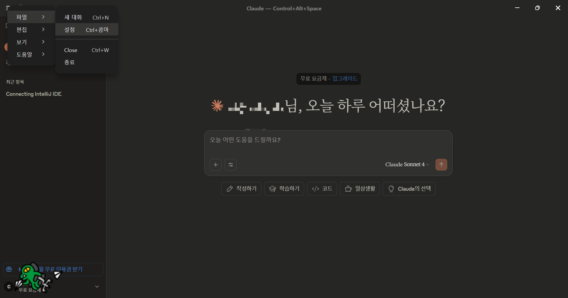 Claude Desktop을 실행 후 아래 과정을 따라 설정을 진행합니다.