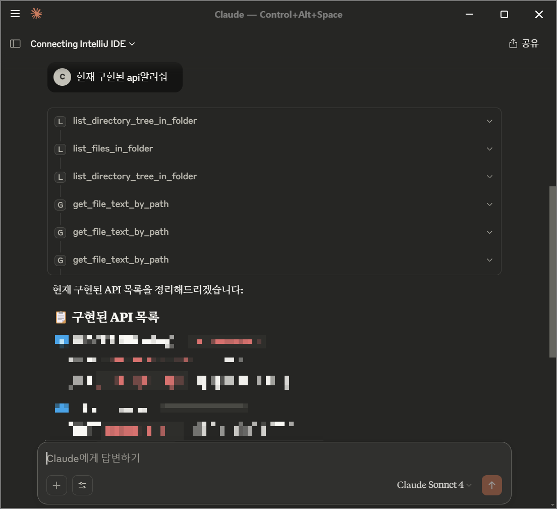 이제 Claude Desktop에서 프롬프트로 개발을 하거나 프로젝트 분석 등 원하는 작업을 진행할 수 있습니다.